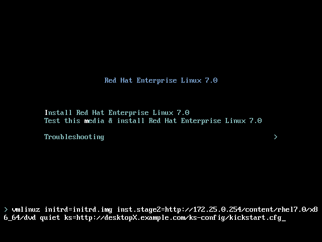 It is possible to provide the Kickstart file on a local disk. This allows a quick way to rebuild a development server.