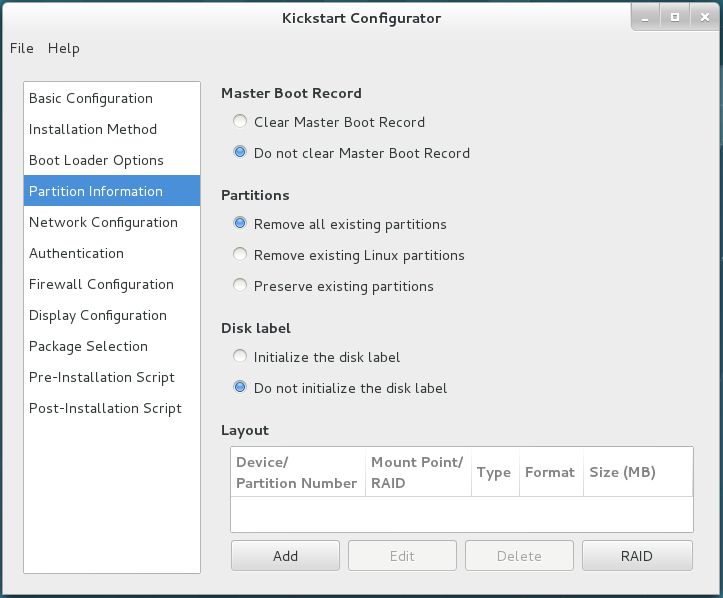 Creating a Kickstart configuration file from scratch with a