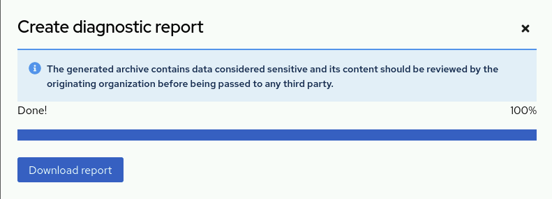 You can generate a diagnostics report to submit to Red Hat technical support by using either the web console or the command line.
