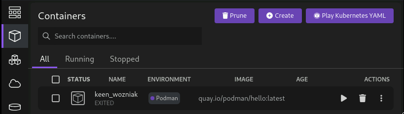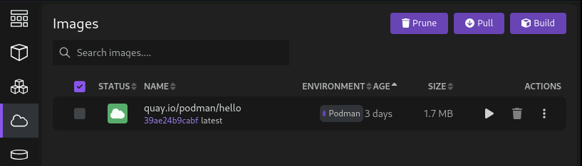 With Podman Desktop, you can perform many of the tasks that you can do with the podman CLI, such as pulling images and creating containers.