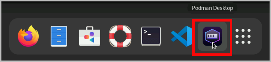 Open Podman Desktop. Click at the upper-left corner of the top bar, and then click the icon.