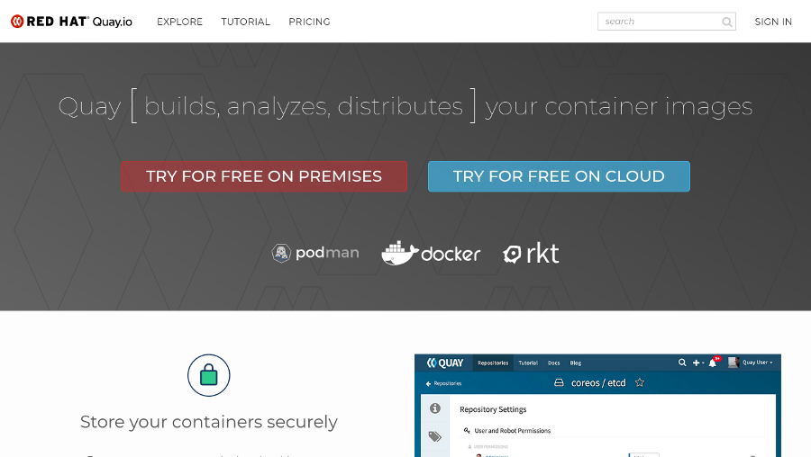 Although the Red Hat Registry only stores images from Red Hat and certified providers, you can use the Quay.io registry to store your custom images. Storing public images in Quay.io is free, and paying customers receive further benefits, such as private repositories. Developers can also deploy an on-premise Quay instance, which you can use to set up an image registry on your infrastructure.