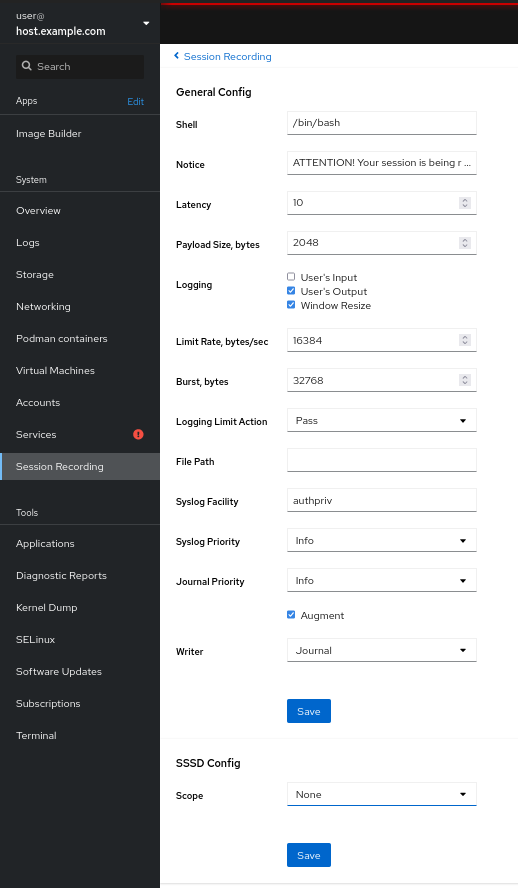 [root@host ~]#yum install cockpit-session-recording[root@host ~]#systemctl status sssd