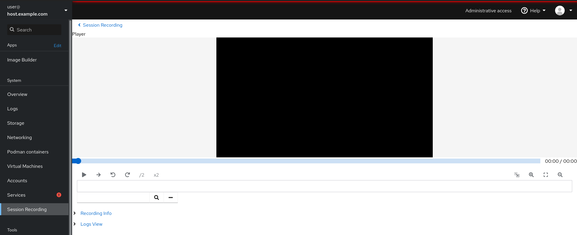The Session Recording capability is new with the web console, and is based on the tlog package. The web console session player can record and play back user terminal sessions. The session player captures terminal input and output and stores the session in a text format in the system journal.