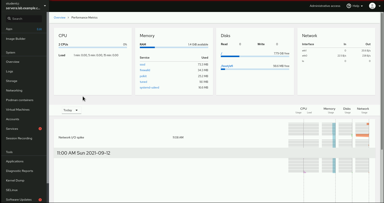 In this exercise, you install and configure the web console software on servera. You use web console features to gather current performance statistics of the system. You record the terminal session of a consultant.