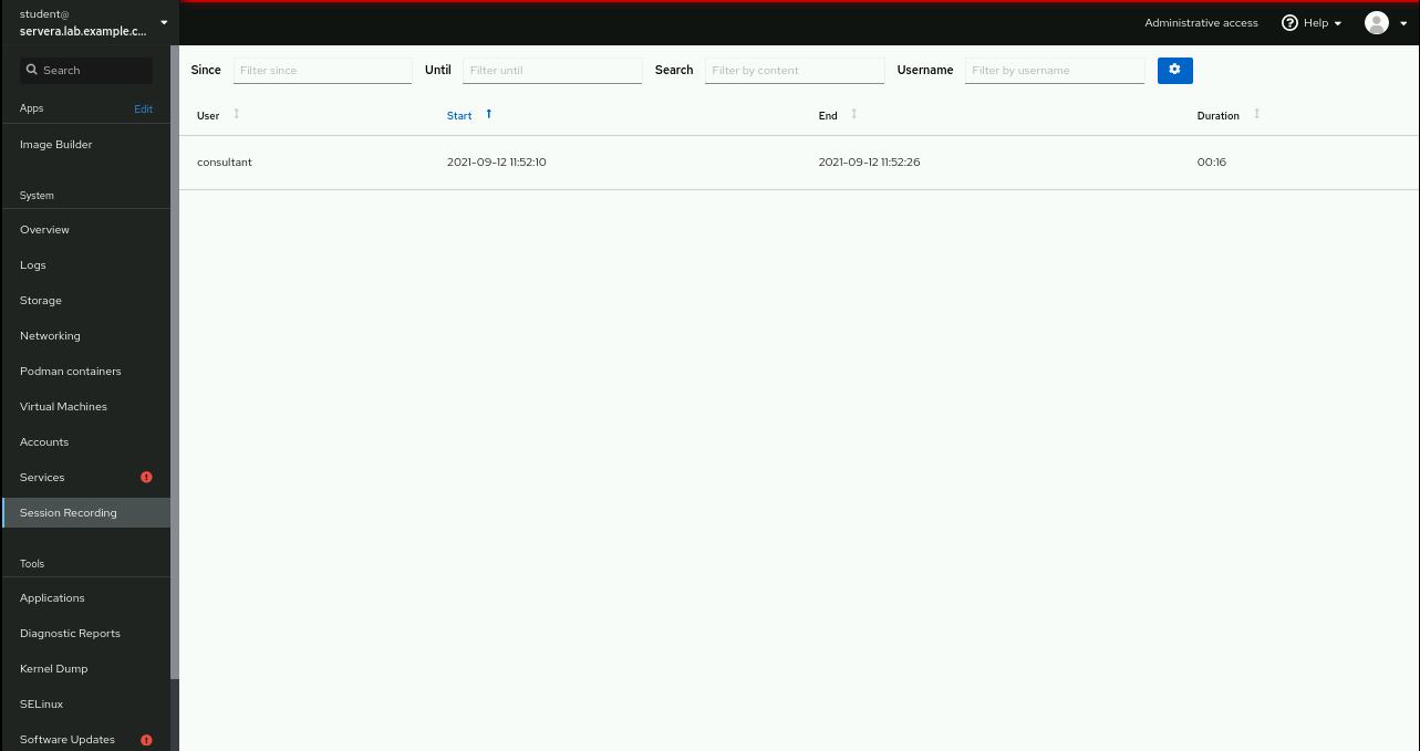 yum install cockpit-composer cockpit-machines cockpit-pcp cockpit-podman cockpit-session-recording tlogRestart the